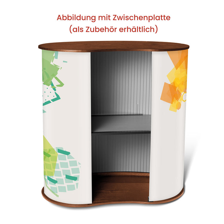 - Platzsparende Promotiontheke mit praktischem Stauraum