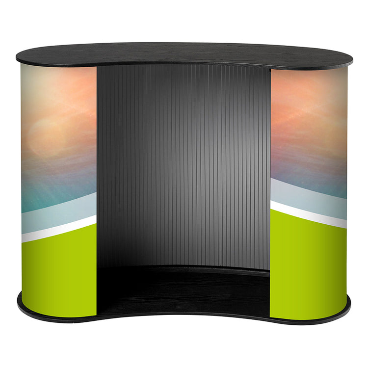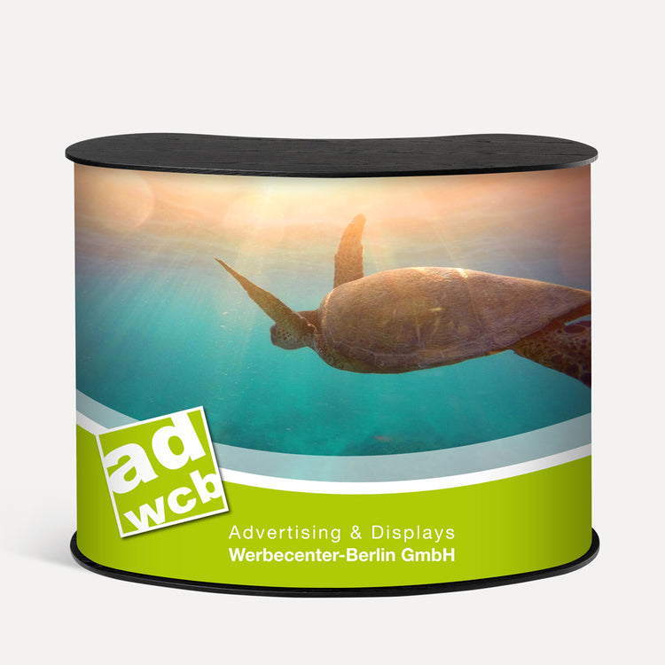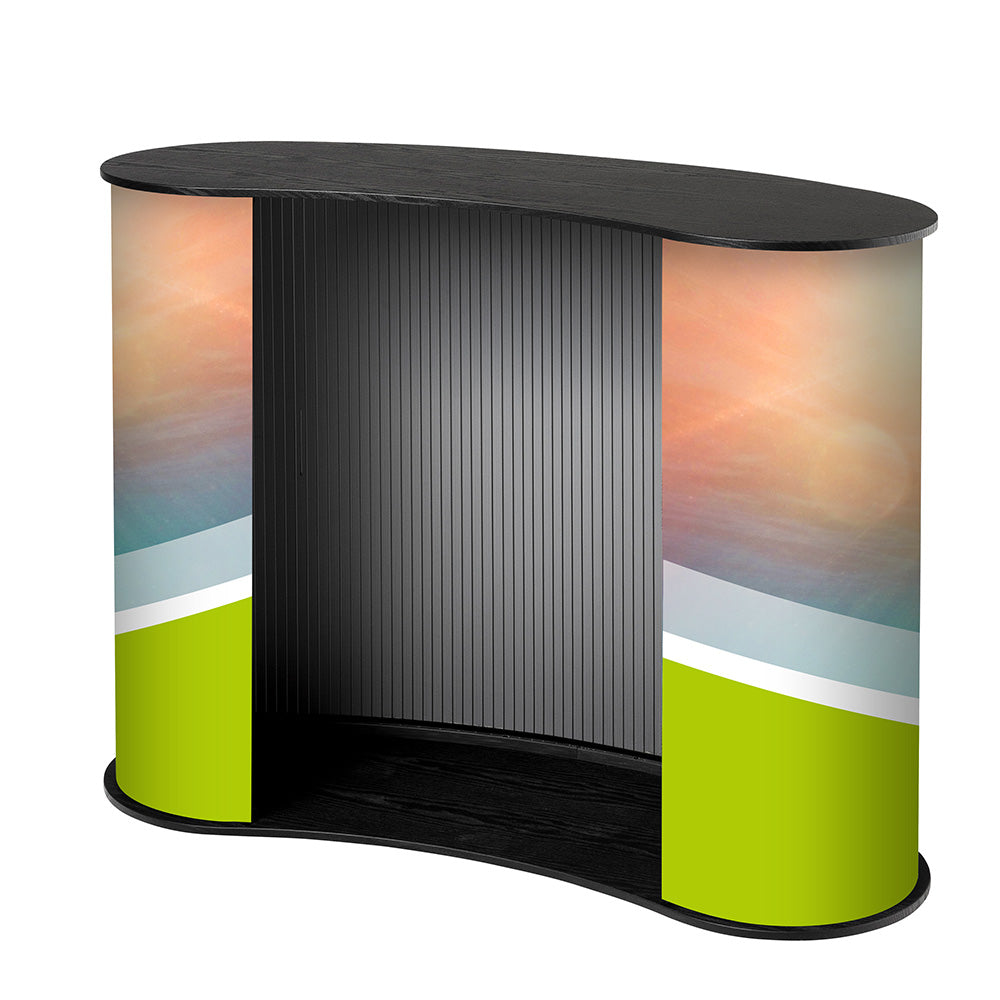 Die Messe-Theke „Professional Original L“ bietet eine besonders große Werbefläche, eignet sich ideal als Promotionstand für Kundengespräche und verfügt über praktischen Stauraum für Werbemittel.