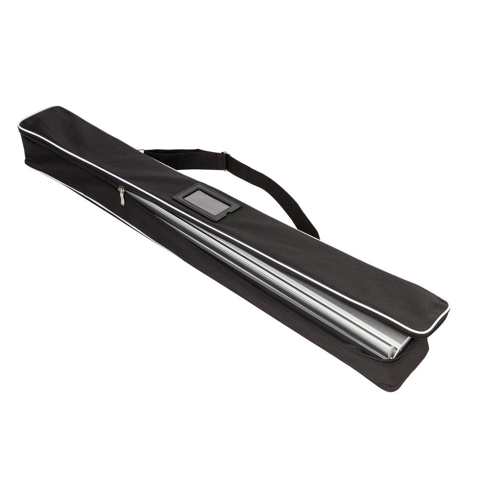 Für einen sicheren Transport wird das Roll-Banner Eco Black in einer gepolsterten Tragetasche mit durchgehendem Reißverschluss geliefert. Die stabilen Tragegriffe erleichtern den Transport zwischen verschiedenen Einsatzorten, sodass das Display bequem von Veranstaltung zu Veranstaltung mitgenommen werden kann.