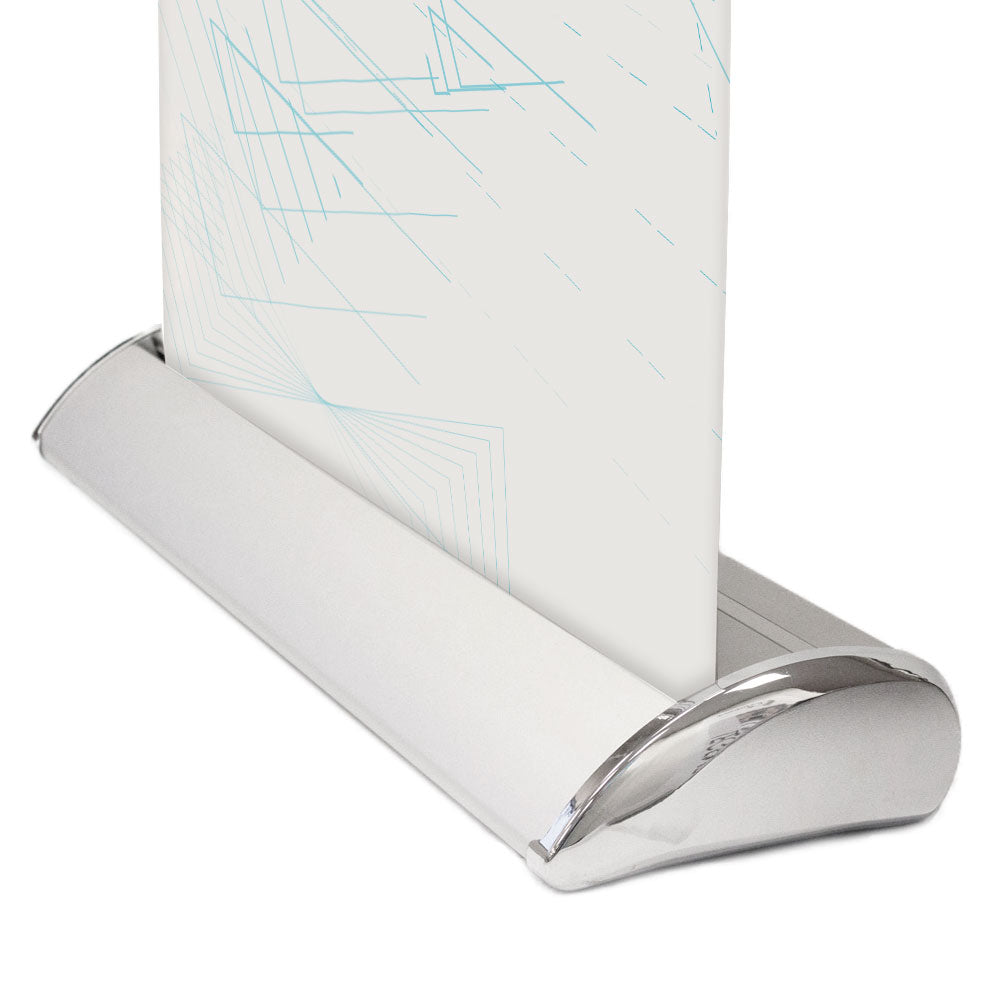 Das Roll-Up Deluxe überzeugt durch sein elegantes, tropfenförmiges Design und seine besonders stabile Verarbeitung. Mit einer Höhe von 220 cm bietet es über Kopf hohe Werbemöglichkeiten. Wählen Sie aus den vorhandenen Breite von 85 cm bis 180 cm und für den XXL Auftritt in 200 cm. Somit sind Sie für alle Raumverhältnisse auf, Messen, Events und Büros gewappnet.