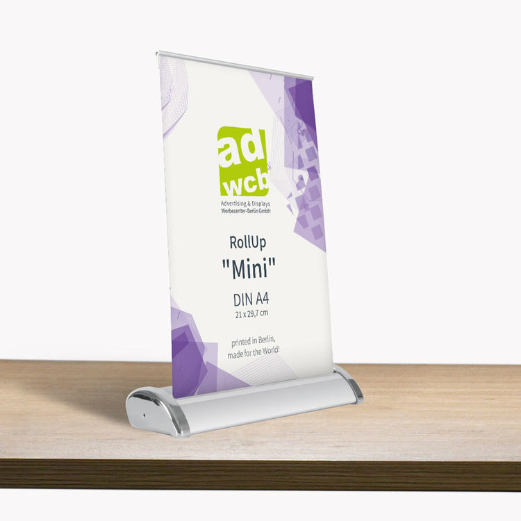 Mini Roll-Up – Kompaktes Werbedisplay für Theke und Tisch