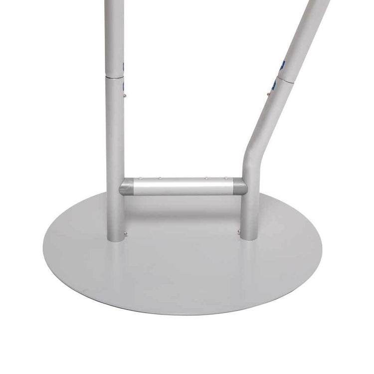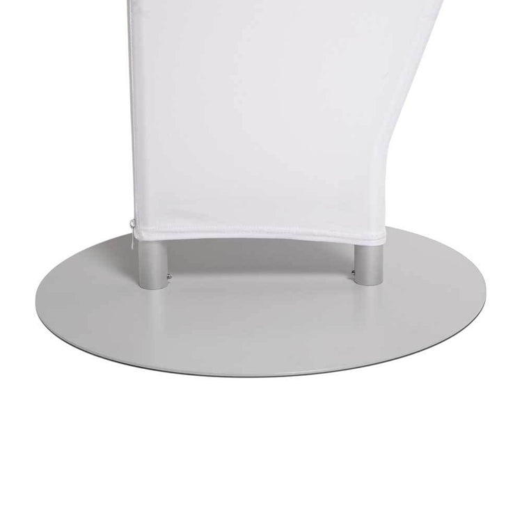 Beidseitiger Druck: Beide Seiten können individuell bedruckt werden und bieten jeweils ca. 108 × 255 cm Werbefläche. Der runde Standfuß mit 50 cm Durchmesser sorgt für einen stabilen Stand.